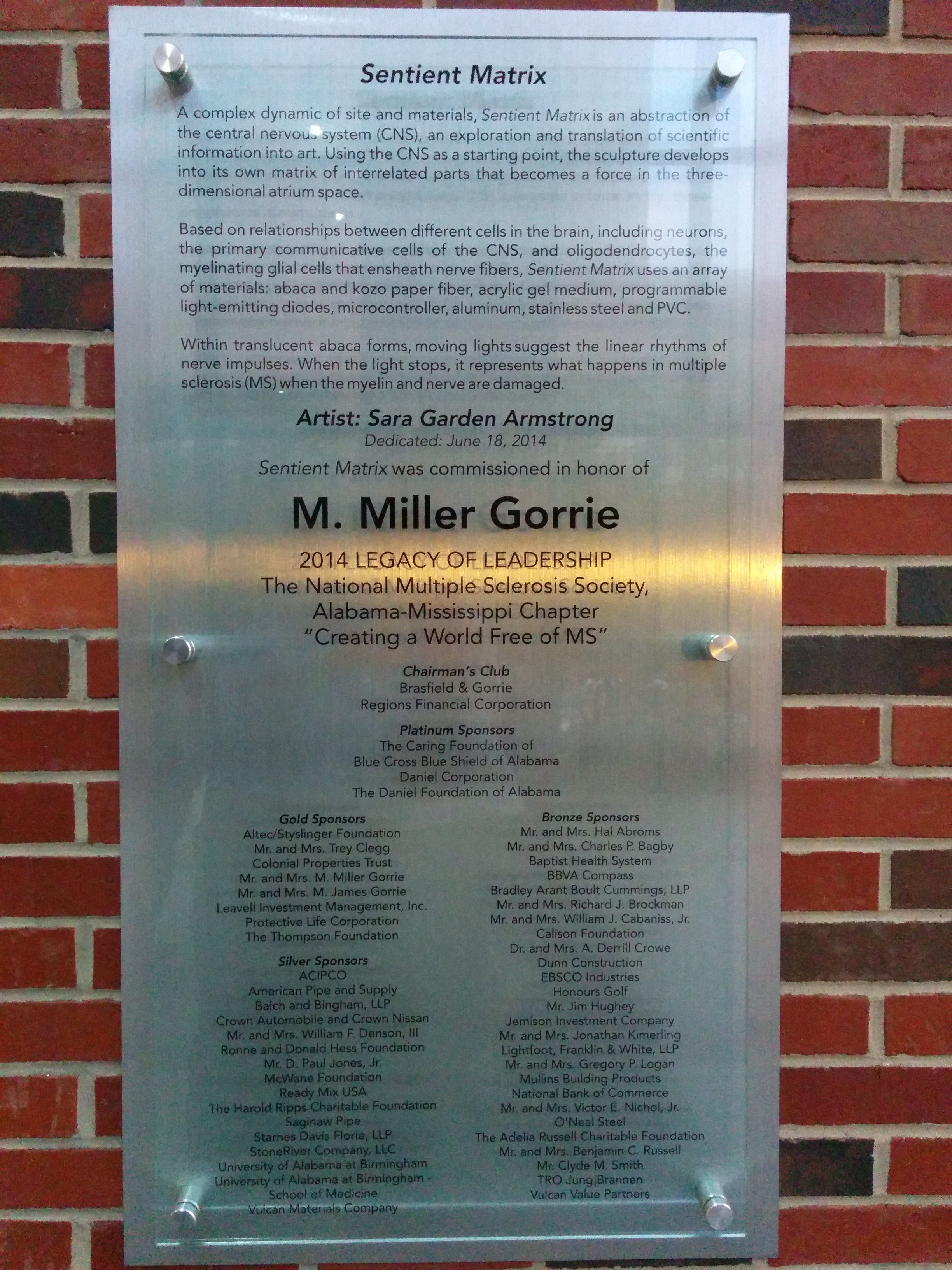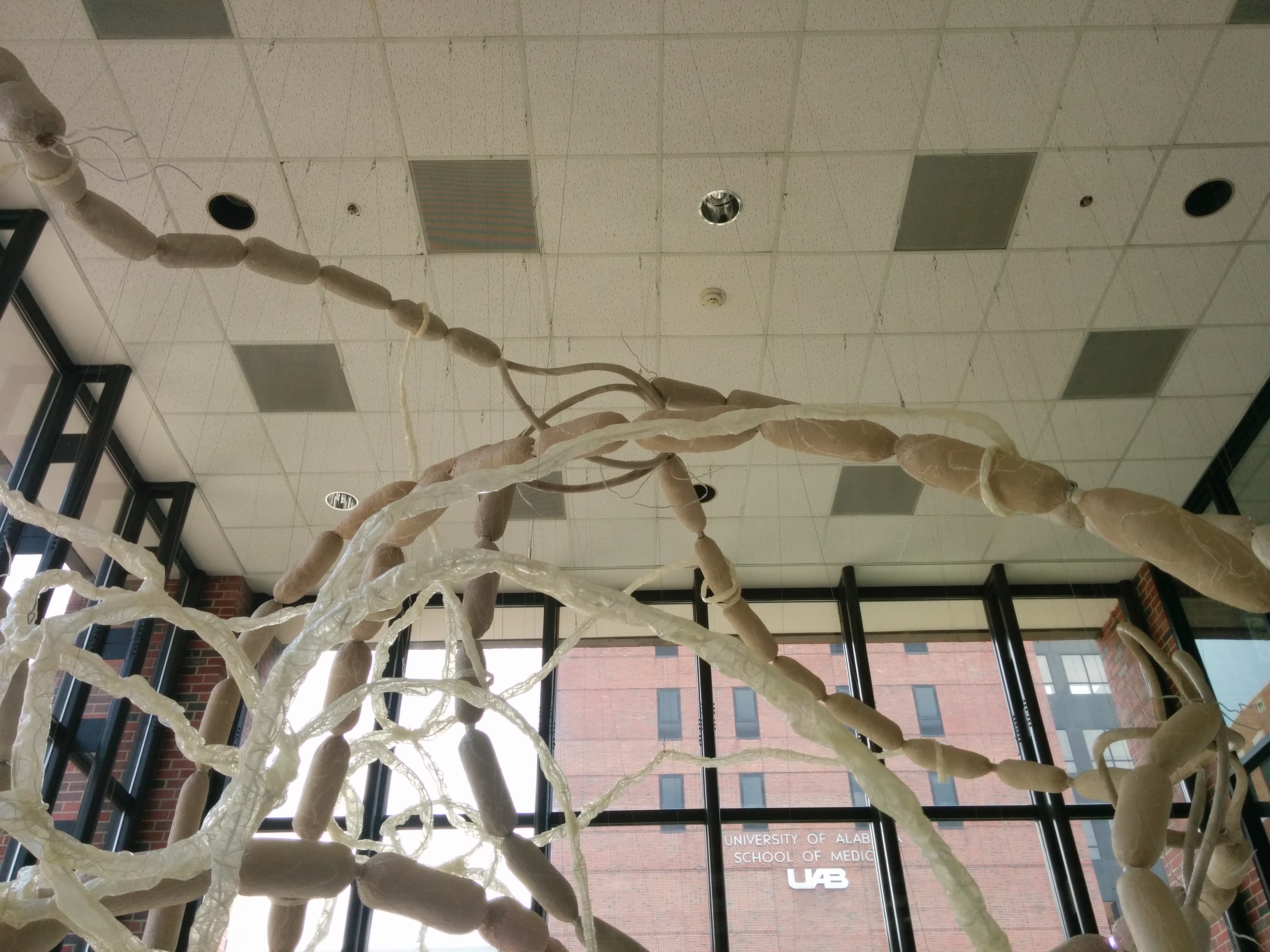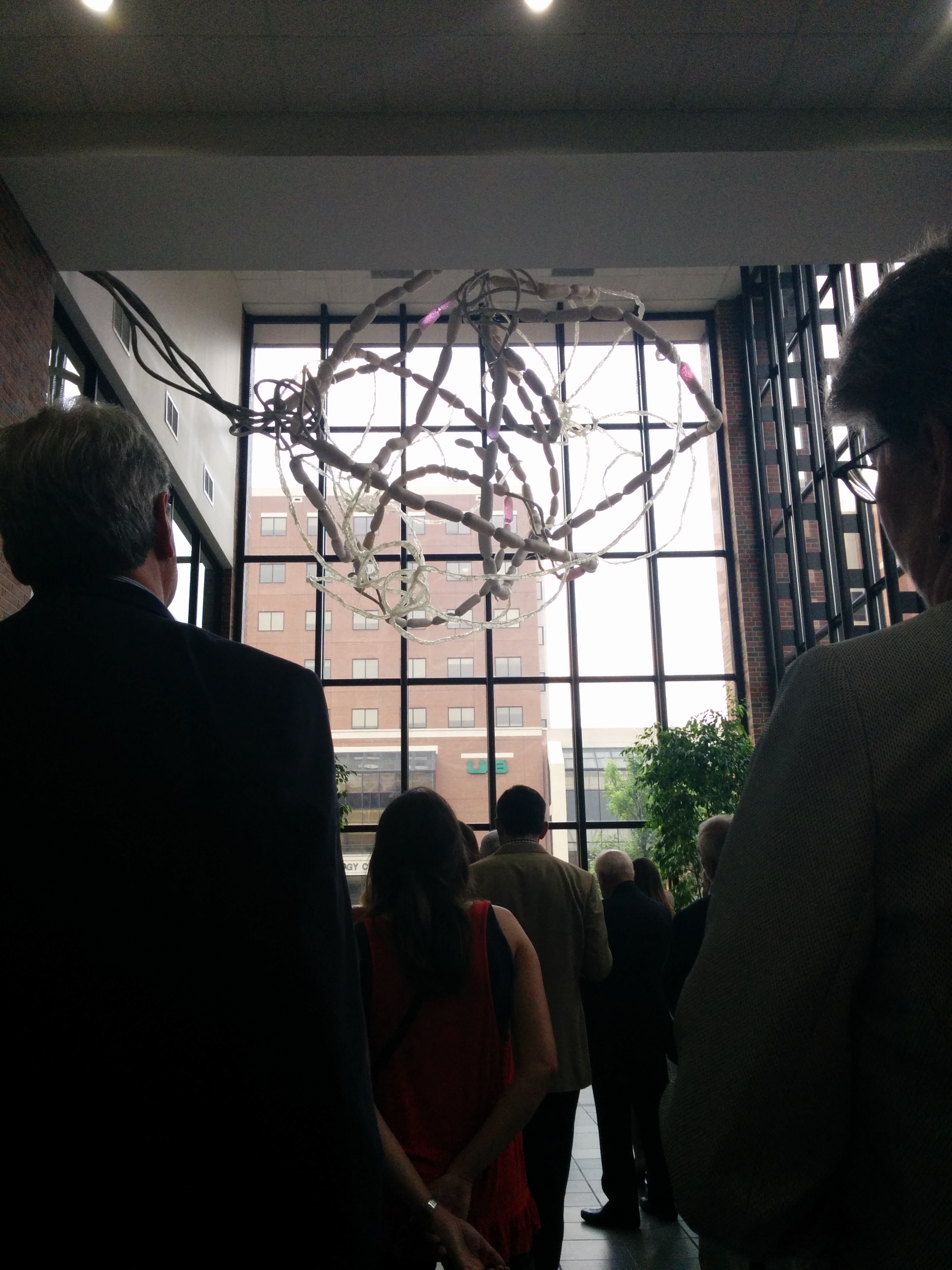 This is an art installation I wired up and programmed for the National Multiple Sclerosis Society. I worked with artist Sara Garden Armstrong. The sculpture and the patterns of light flowing through it present an abstract representation of the effects of MS on nerve cells.