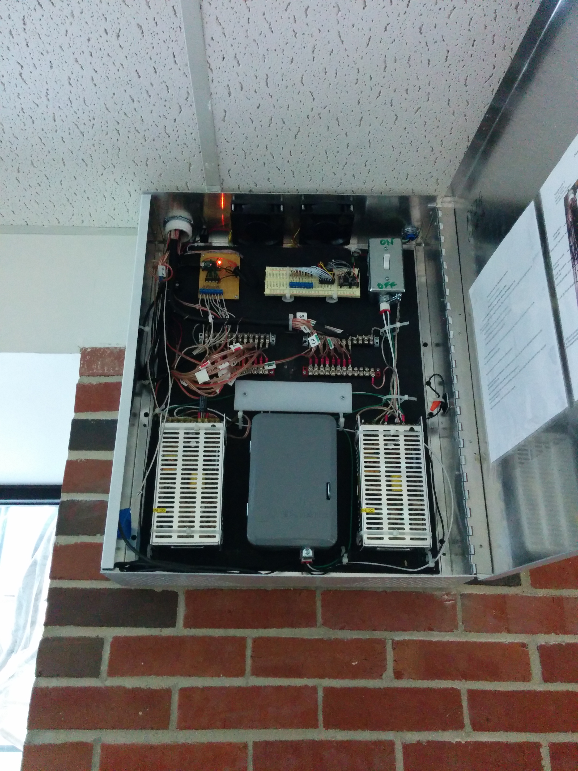 In the control box pictures below you’ll see a second set of everything as a backup since this is a permanent piece and needs to last many years. Those control box pictures still show one final soldered board setup and breadboarded test setup. After we were sure everything was absolutely as we wanted it I created a second soldered board to replace that one.