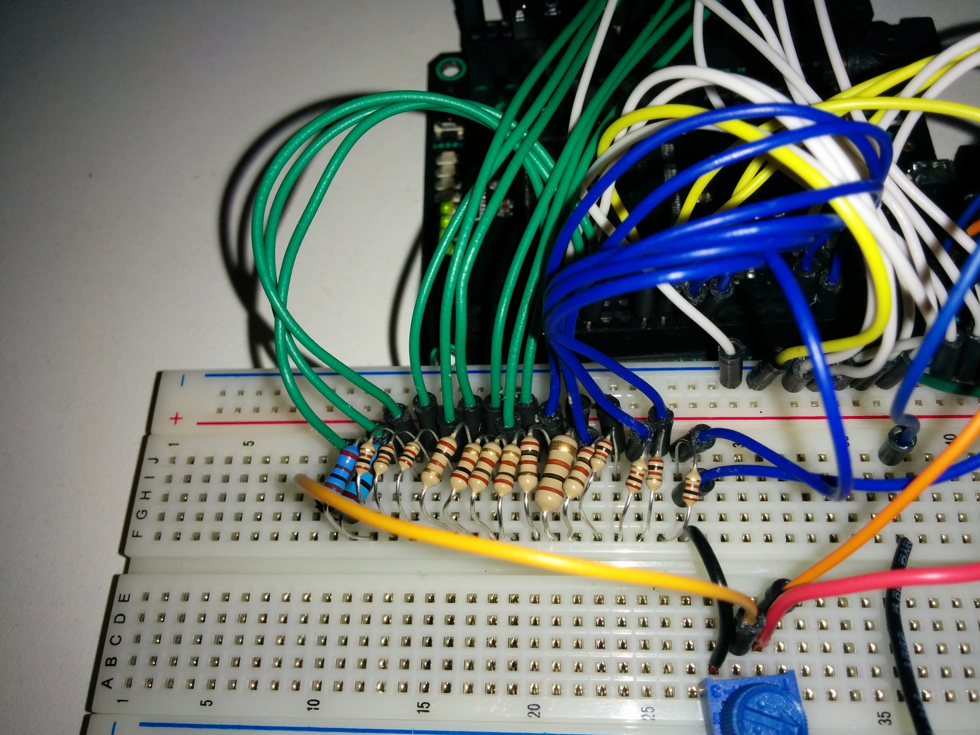 The resistor ladder I made uses 16 resistors that are matched close enough(97-99 ohm).