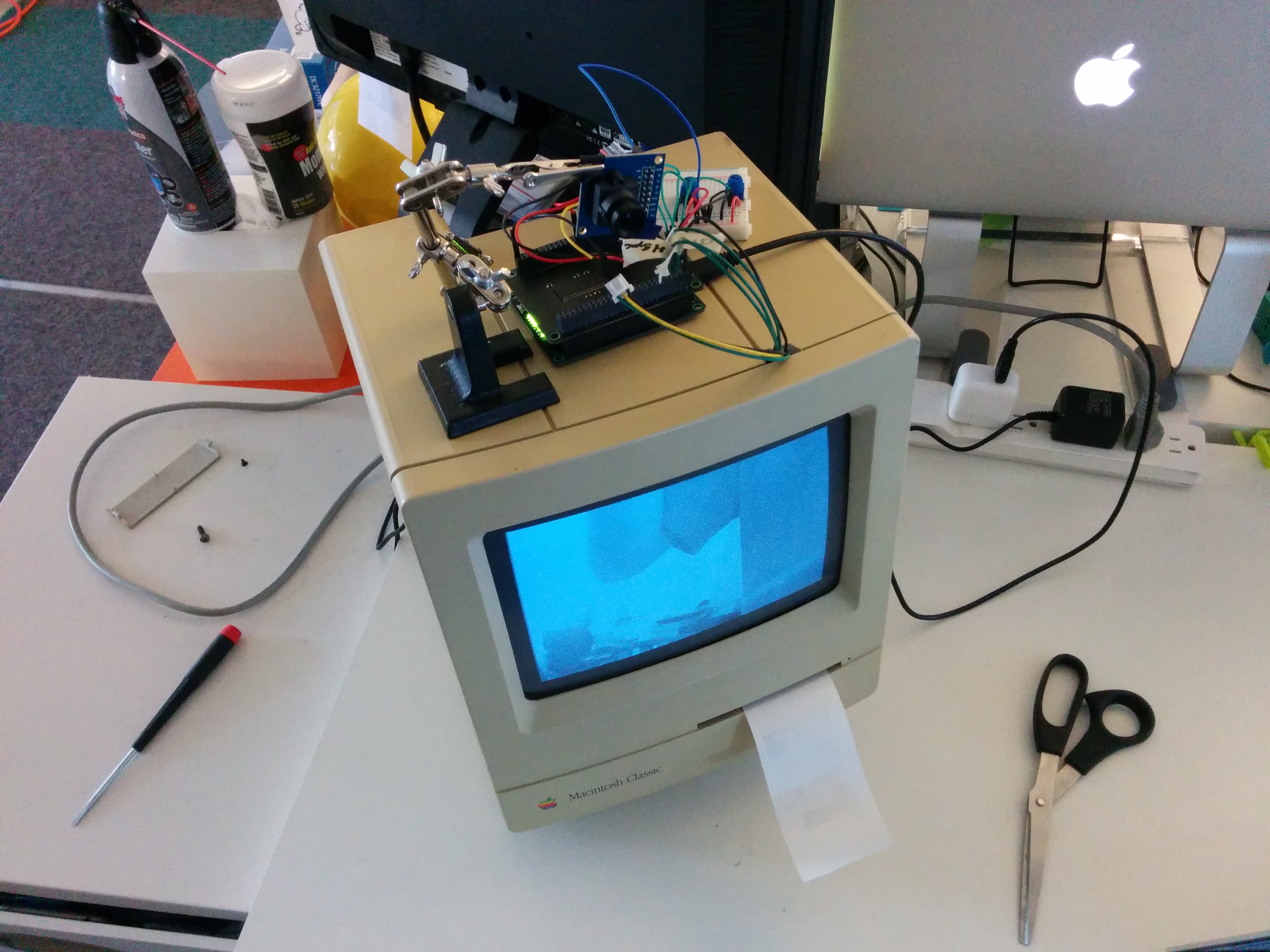 I wanted to take the next step and have everything running on the FPGA: camera interface, image processing, CRT display, and printer driver. Here’s where I got: