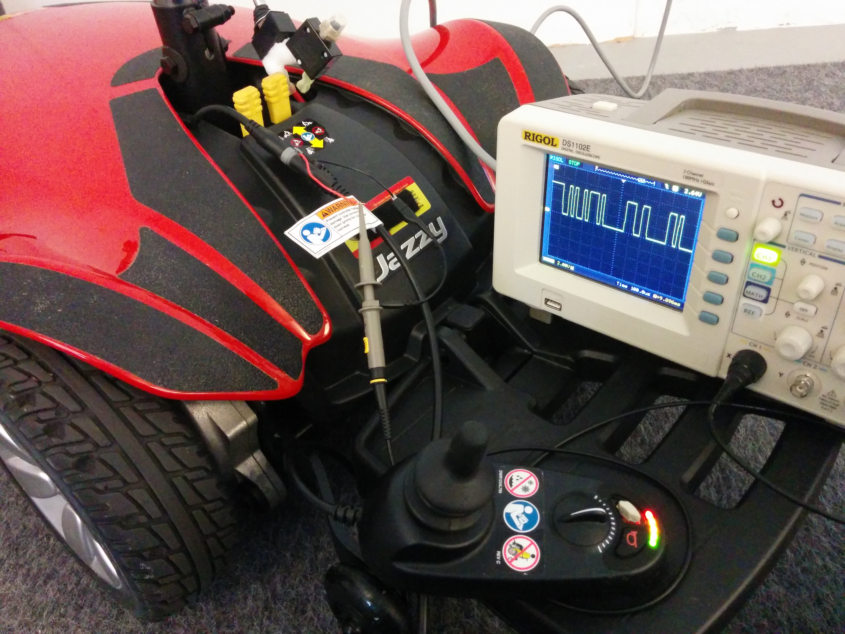 I needed a powerful and stable wheeled base for a robot I wanted to build, so eventually I hit upon the idea of using the base of an electric wheelchair. I bought a cheap used one and learned that its motor driver actually has some significant logic and safeties which in hindsight makes a lot of sense. I could have bypassed all this and drove the motors directly but I wanted to see what headway I could make trying to communicate with that motor driver. Having made that choice, I also made the choice to not hack the wheelchair’s joystick, but to instead emulate the communication protocol it used. Here’s where I got:
