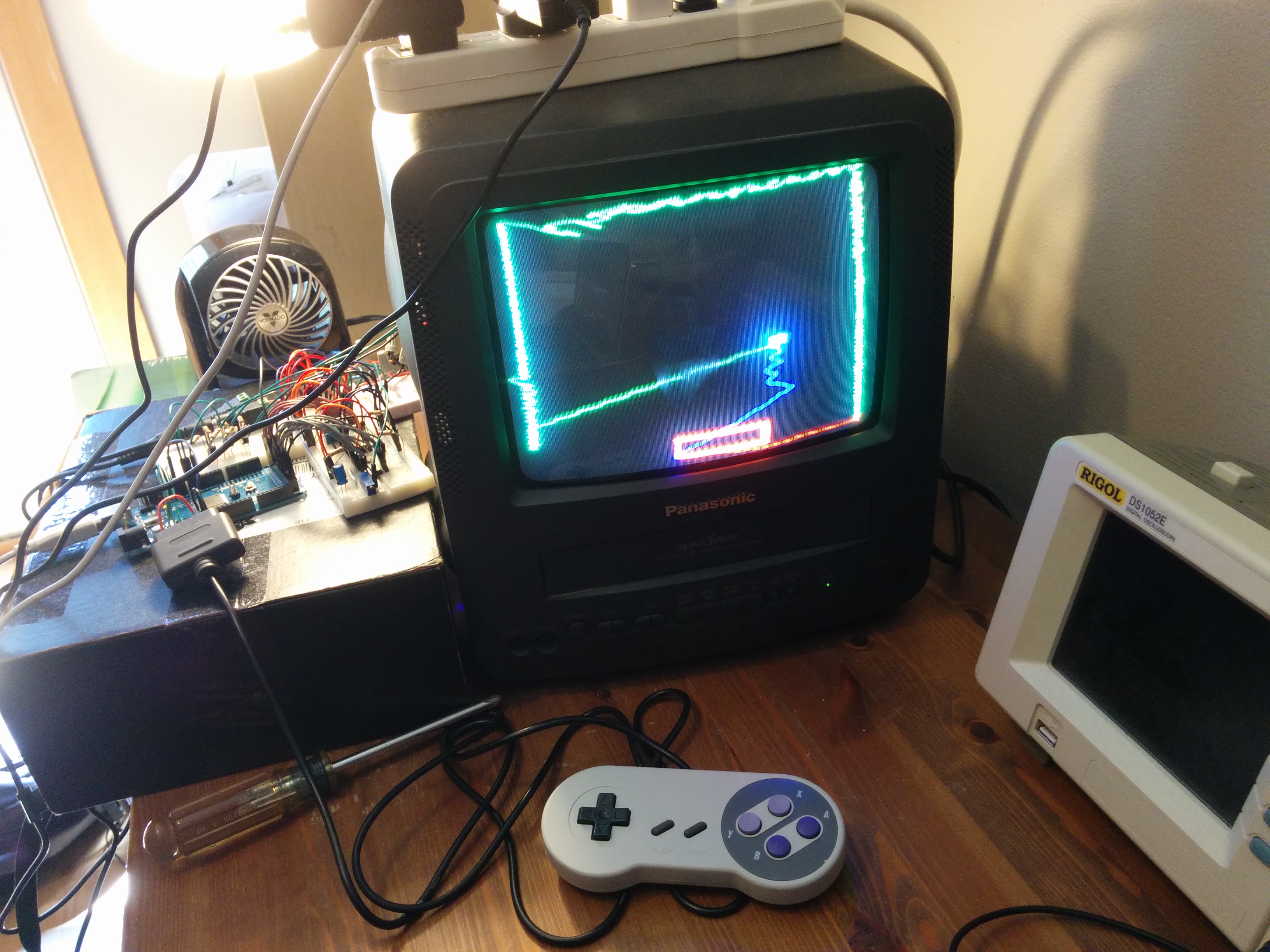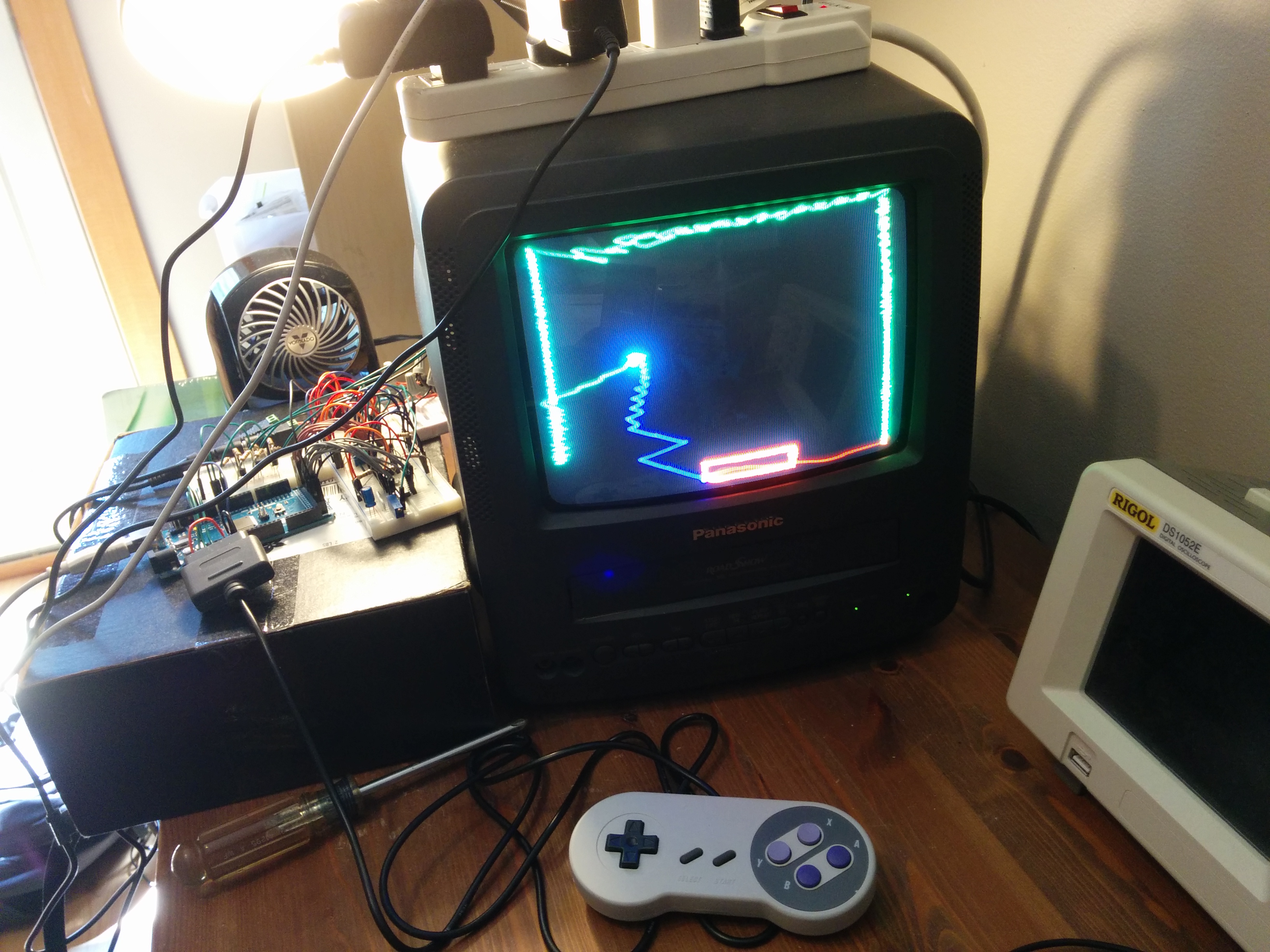 For the game’s controller I originally was going to use a simple 2-pot joystick, but, I had this 3rd party SNES controller laying around so after doing some online research it turned out to be pretty easy to wire up.