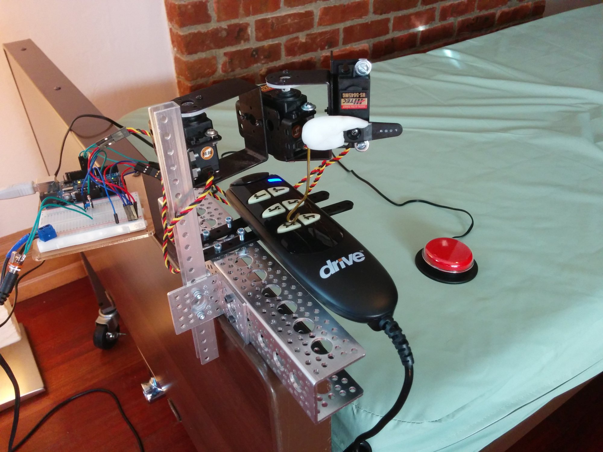 With any equipment modification, failure cases must be considered and their risk to the user understood. Given the bed example as-is, you MUST consider what would happen to the user if the button pusher locked up and continued pressing a button such that the bed went all the way to one of its extreme positions. You MUST also consider what would happen if the wrong button was pressed. If either of these could harm the user in any way, then this adaptation MUST NOT be used as-is without other safeties in place. Failure can be mechanical, or in software, or in the communication or connections between parts of the system. Individual parts must be tested and the system as a whole must be tested, rigorously, depending on the level of risk. That said, this technique is another way to further enable someone to control their environment.