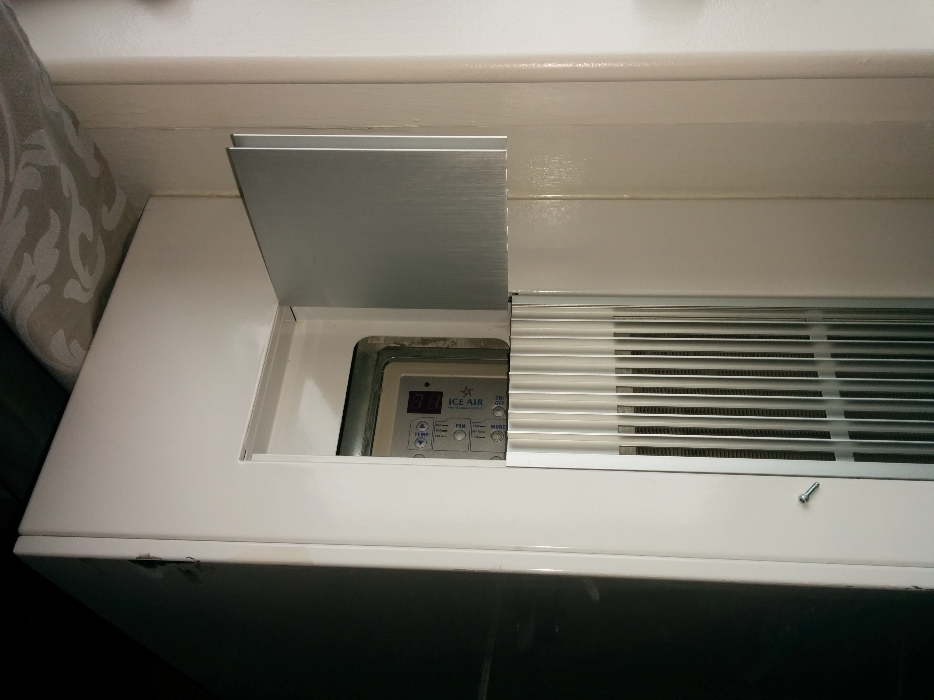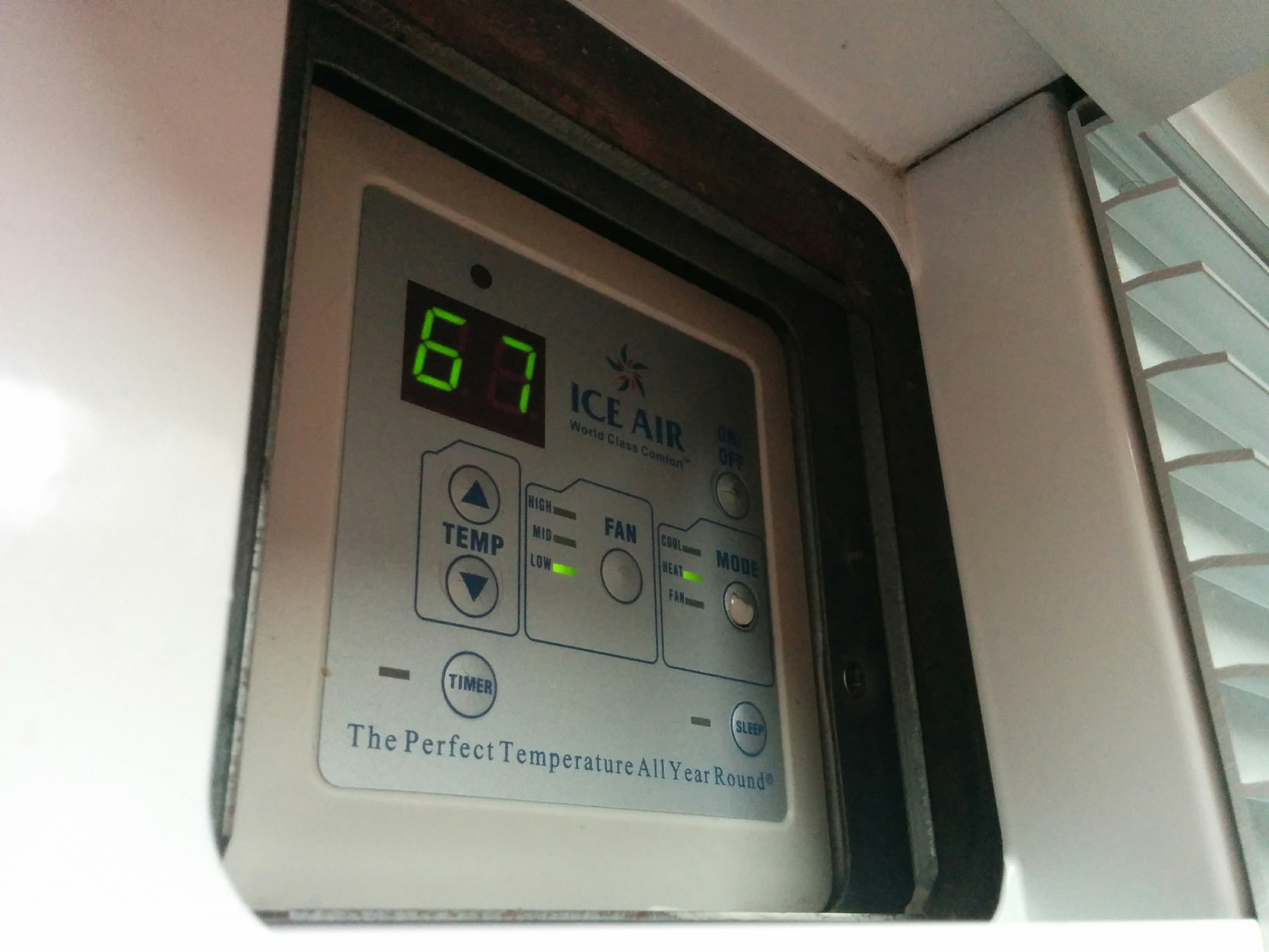 Here is a picture of a PTAC (heating and air conditioner system) that I wanted to help someone control, and a closeup of the control panel: