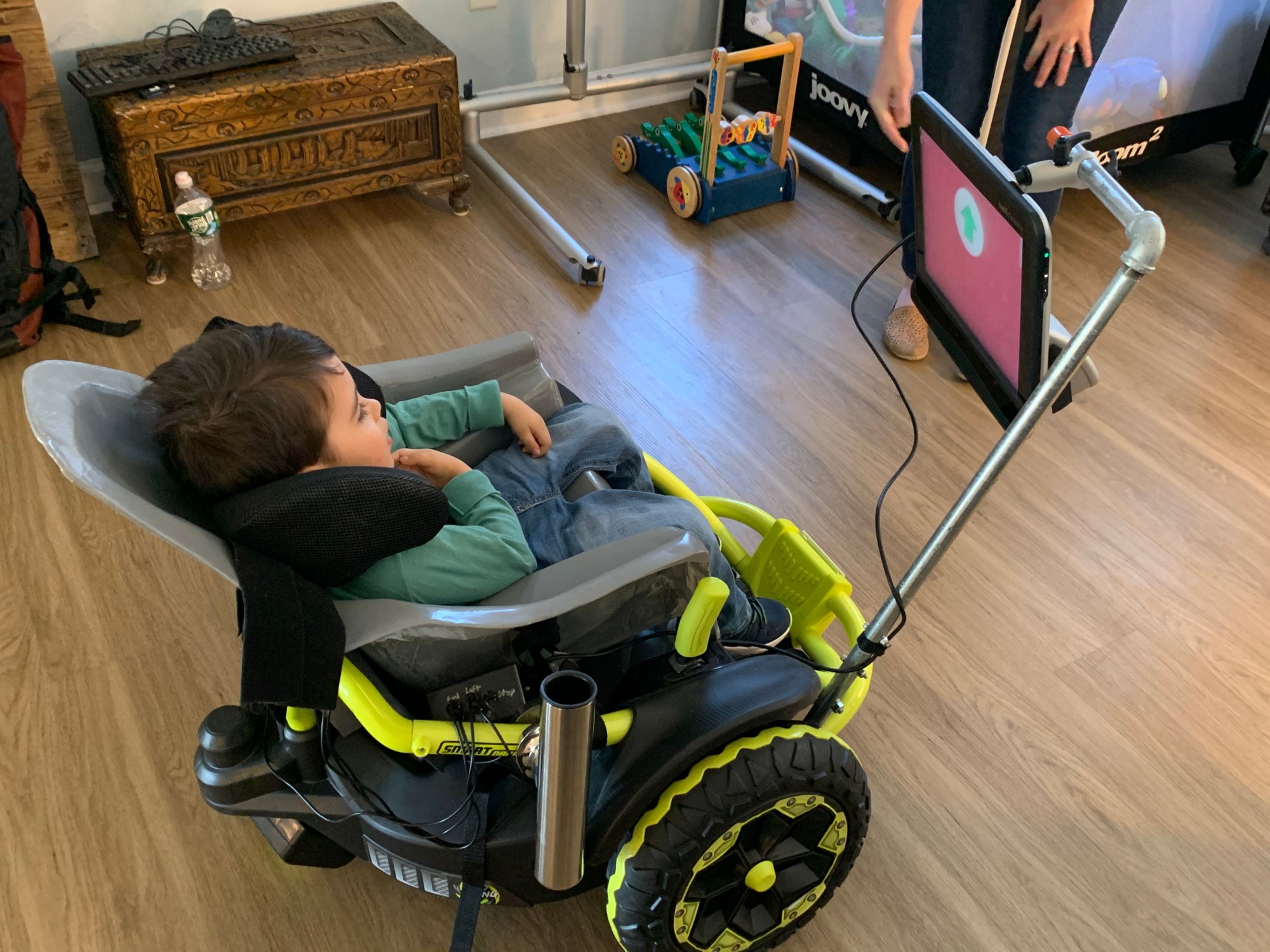 Ben is a 3 yr old with GNA01 neurodevelopmental disorder. His mom reached out to us to setup a Fisher Price Wild Thing to work with Ben’s Tobii Eye Gaze to give him some independent mobility.