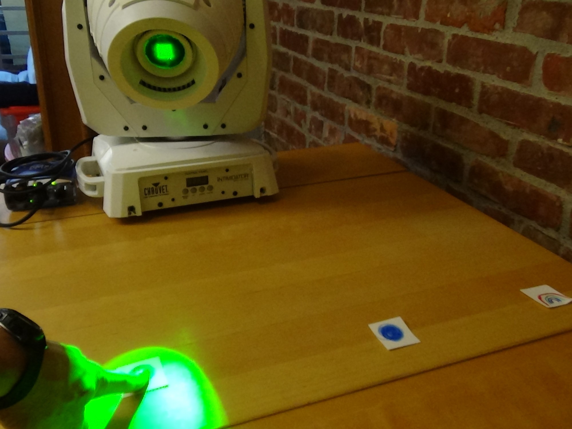 For this test I wanted to have the spot point at where I was touching, and match the color I selected. I also wanted it to close the shutter and point up when I wasn’t selecting anything. I was able to grab the DMX channels I needed from the quick reference guide: