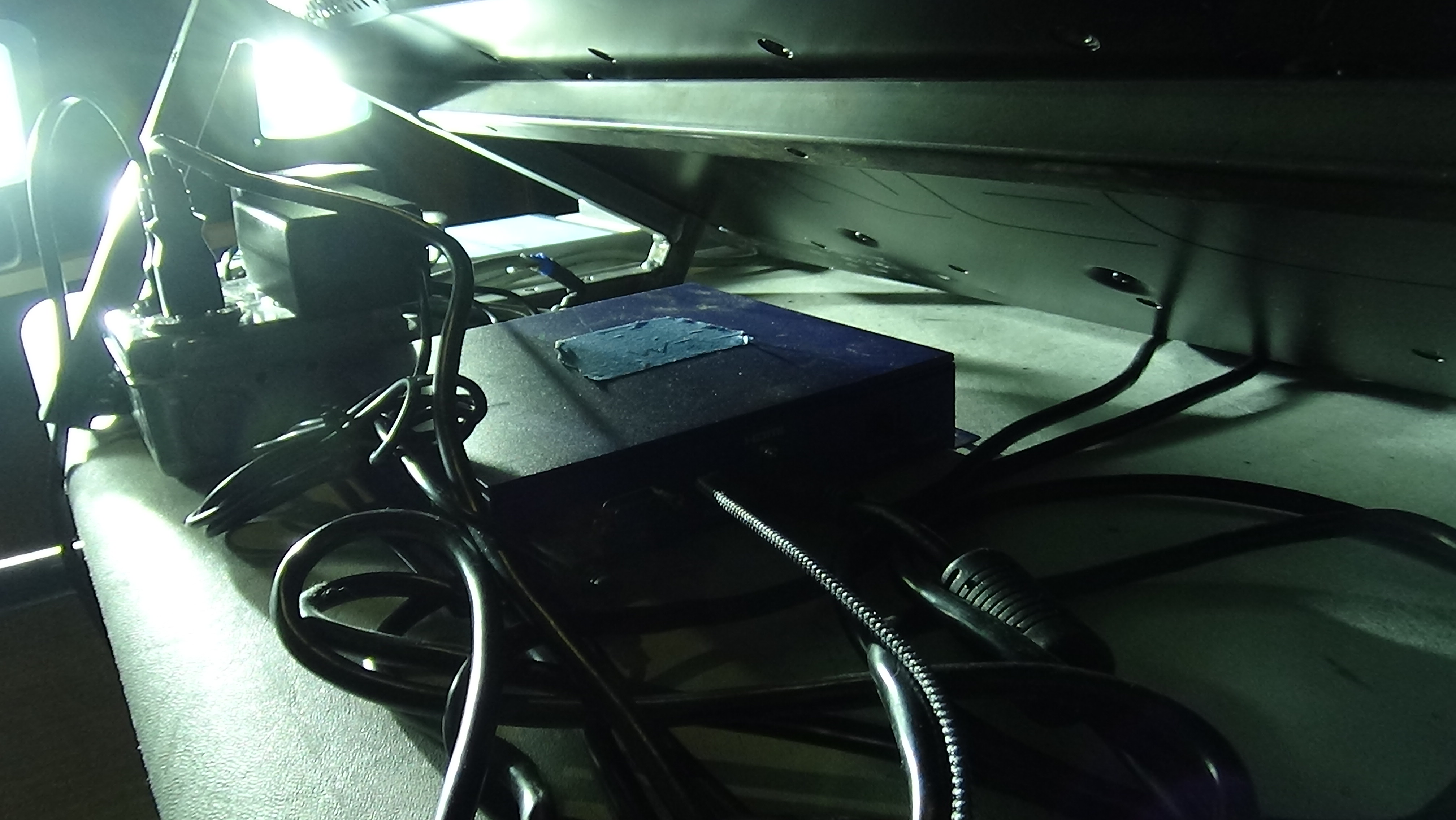 Each “material” is on a white plastic disk, the underside of which has an attached RFID tag. These are picked up by the RFID reader on the right of the exhibit. That MR-1824-MC reader from AWiD can be wired for RS-232 output, which works with the RS-232 port on the Bright Sign.