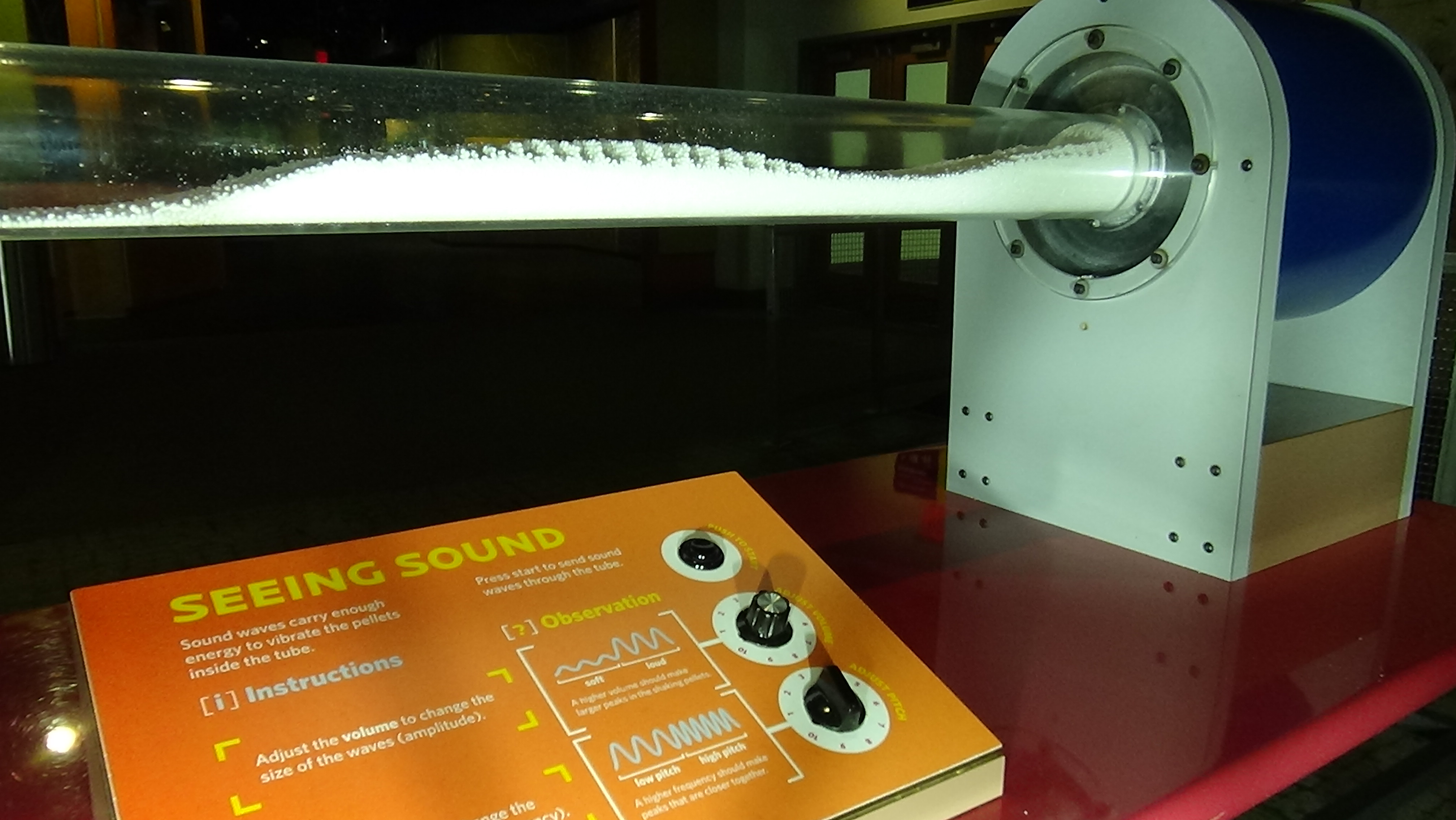 Resonance Tube is an exhibit in the Wonder Why exhibition at Liberty Science Center. When I joined LSC the sound had issues of static, popping, and cutting out. Also the knobs would come loose or break as guests would force the potentiometers past their stop points. LSC was curious if the pots could be changed out for magnetic rotary encoders. The particular ones they found would not wear out as easily and didn’t have stop points so guests could spin them around endlessly without causing damage.